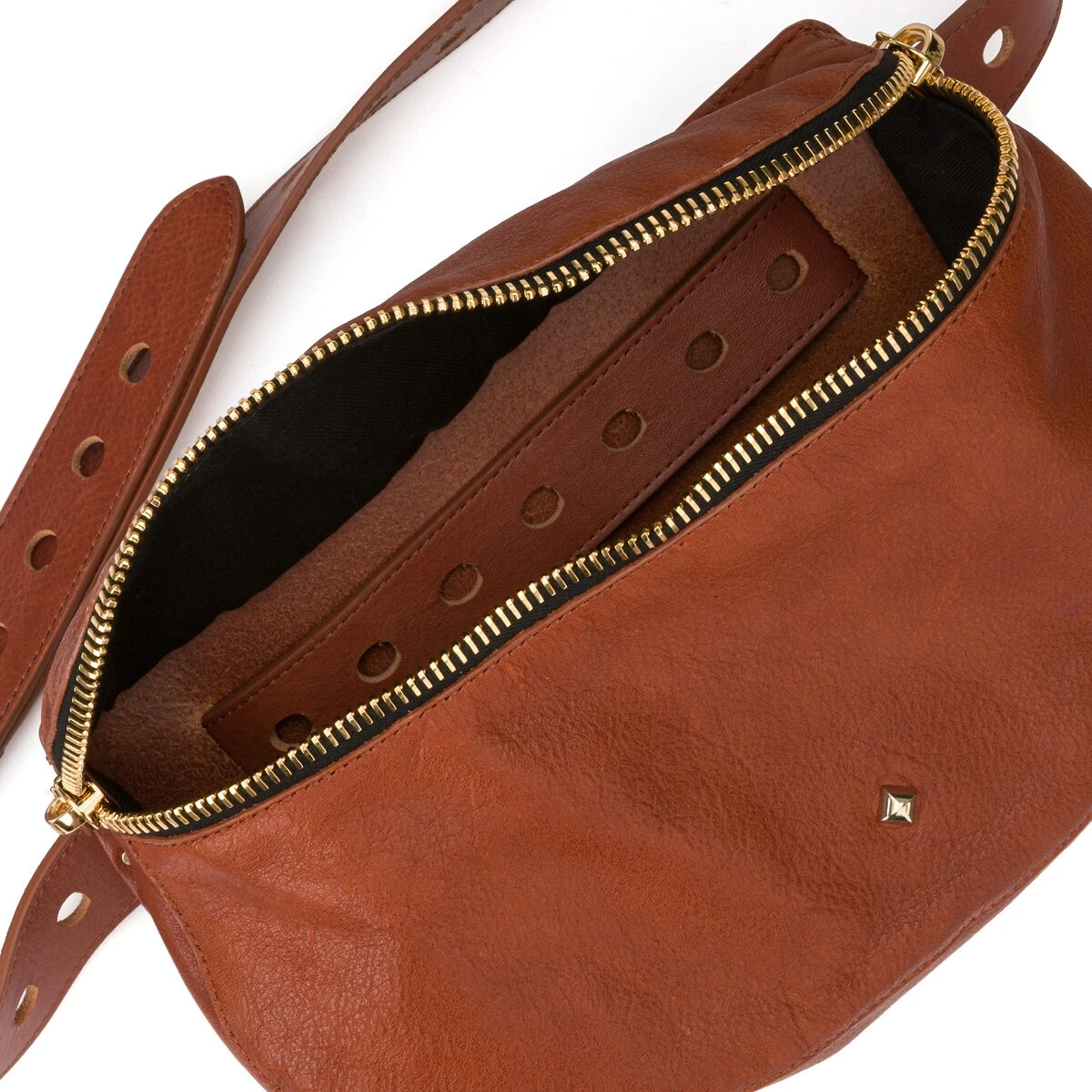 Sac banane zippé en cuir LA GRANDE LILI marron HERBERT FRERE SOEUR