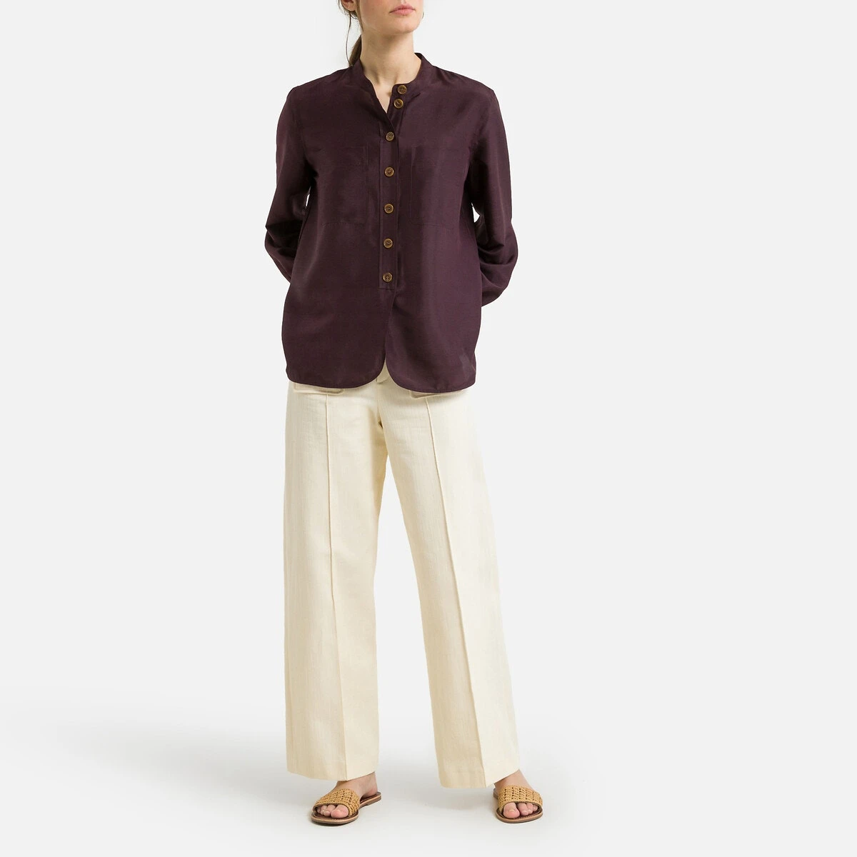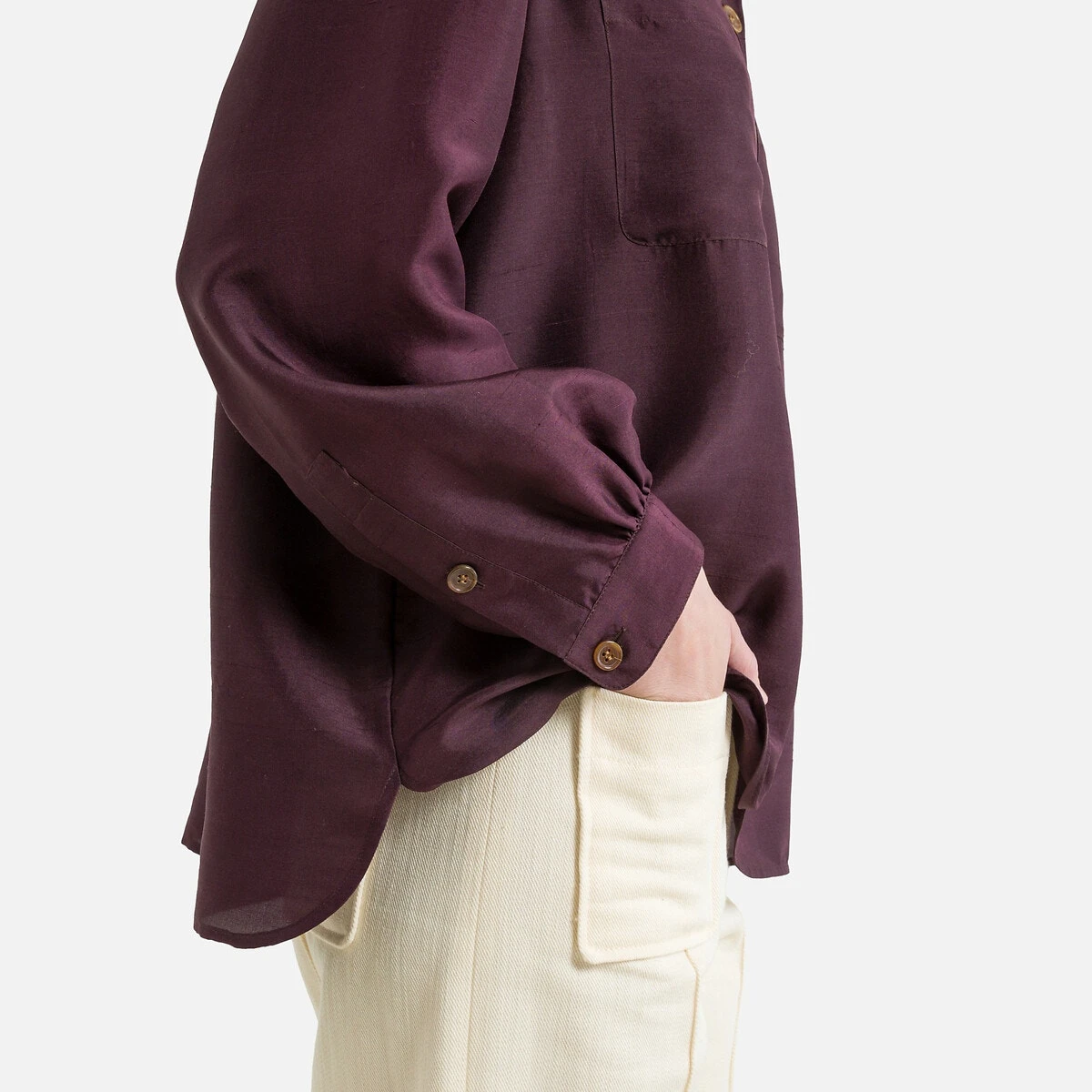 Blouse boutonnée en soie, manches longues LAURE aubergine SOEUR