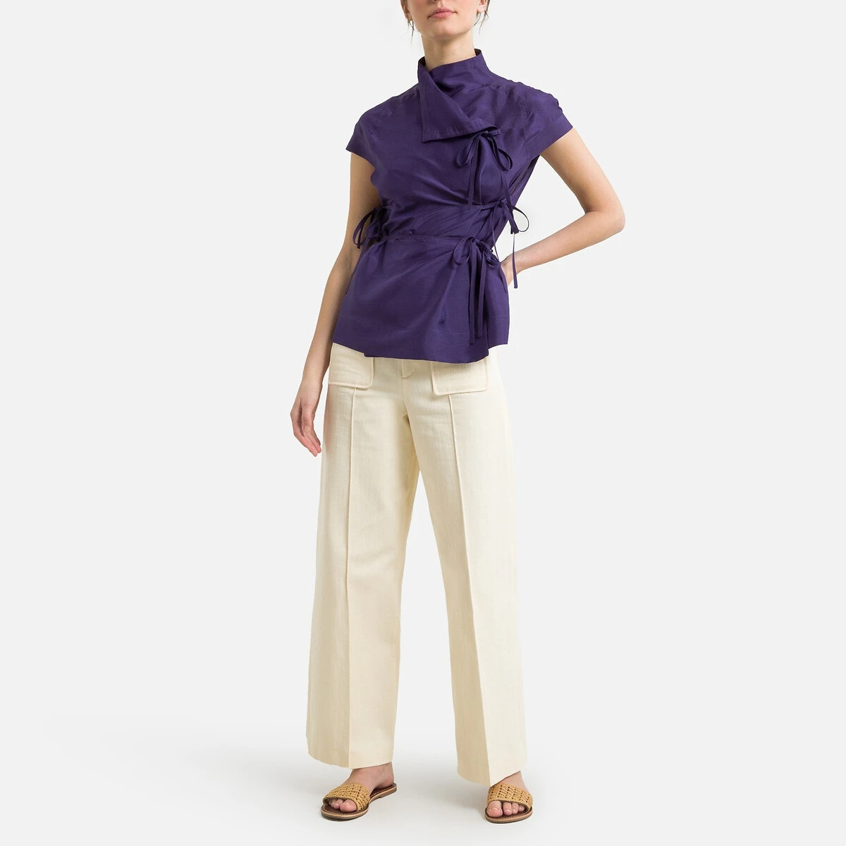 Blouse col montant, manches courtes TARO violet SOEUR