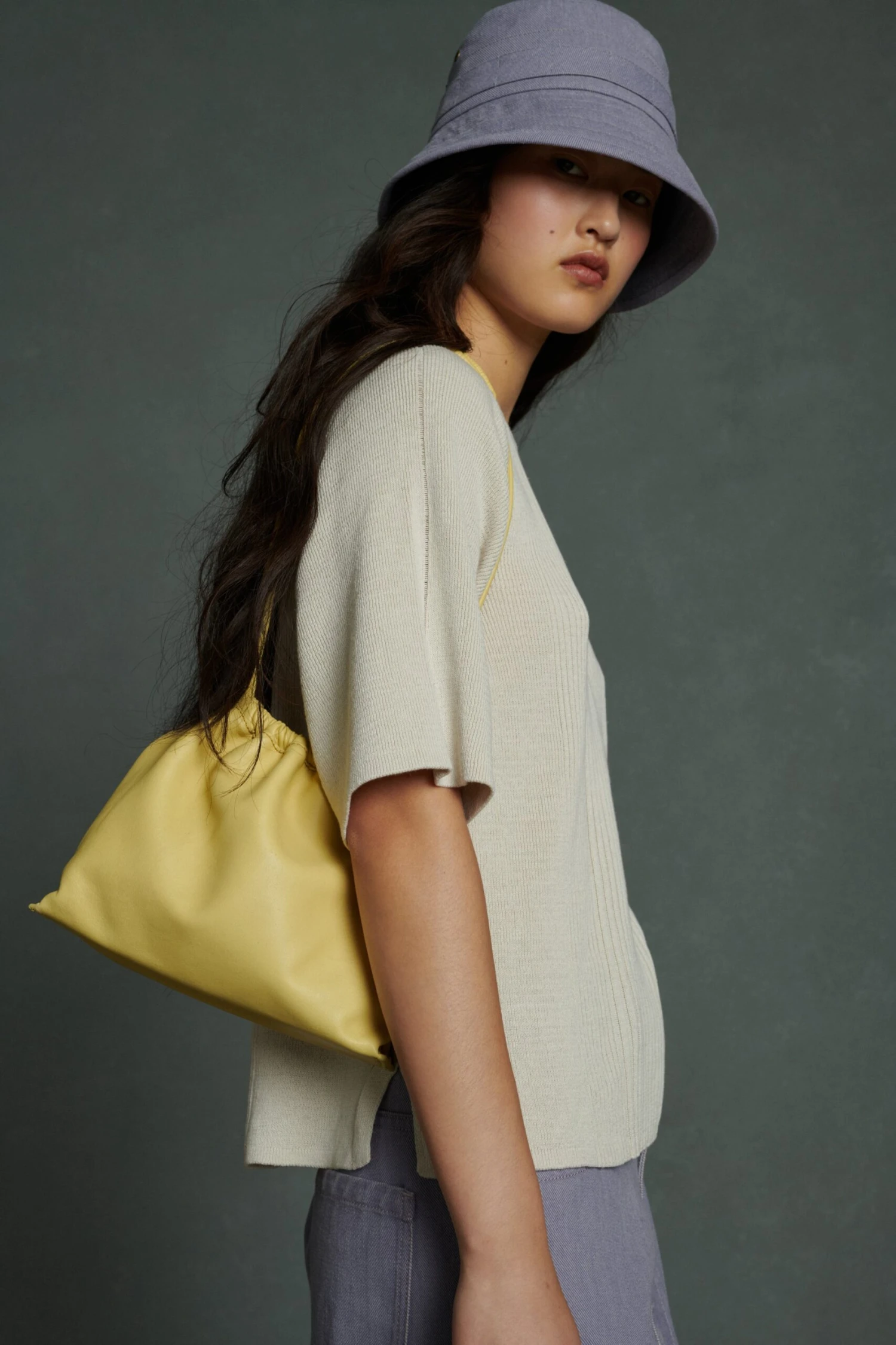 ARMOR est un bob en toile de denim souple qui détourne les codes des chapeaux marins avec ses bords courts et son volume arrondi en cloche. Il est aussi bien adapté à la ville qu’à la plage et peut-être assorti au pantalon ALEXIS disponible dans le même tissu.