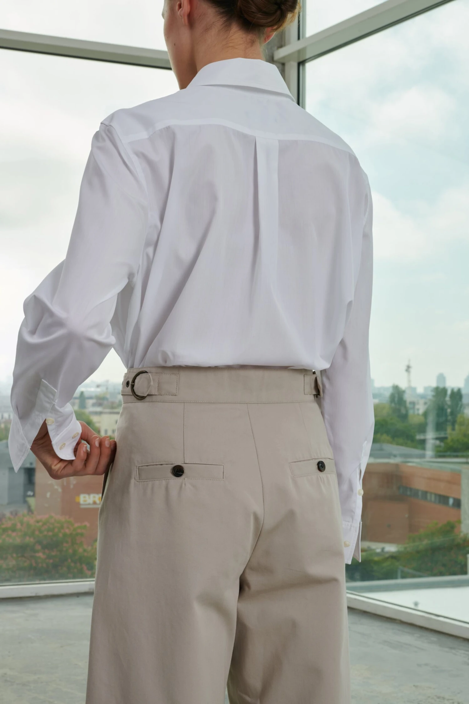 Saphir est une chemise classique d’homme, facile à associer et à juxtaposer à d’autres pièces. Elle est oversize et se porte aussi bien sur un jean qu’une jupe longue.