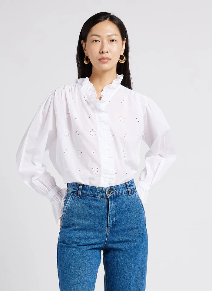 Chemise col victorien avec broderies anglaises en coton by Soeur pour Femme.