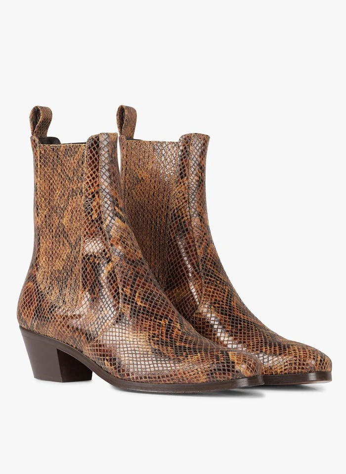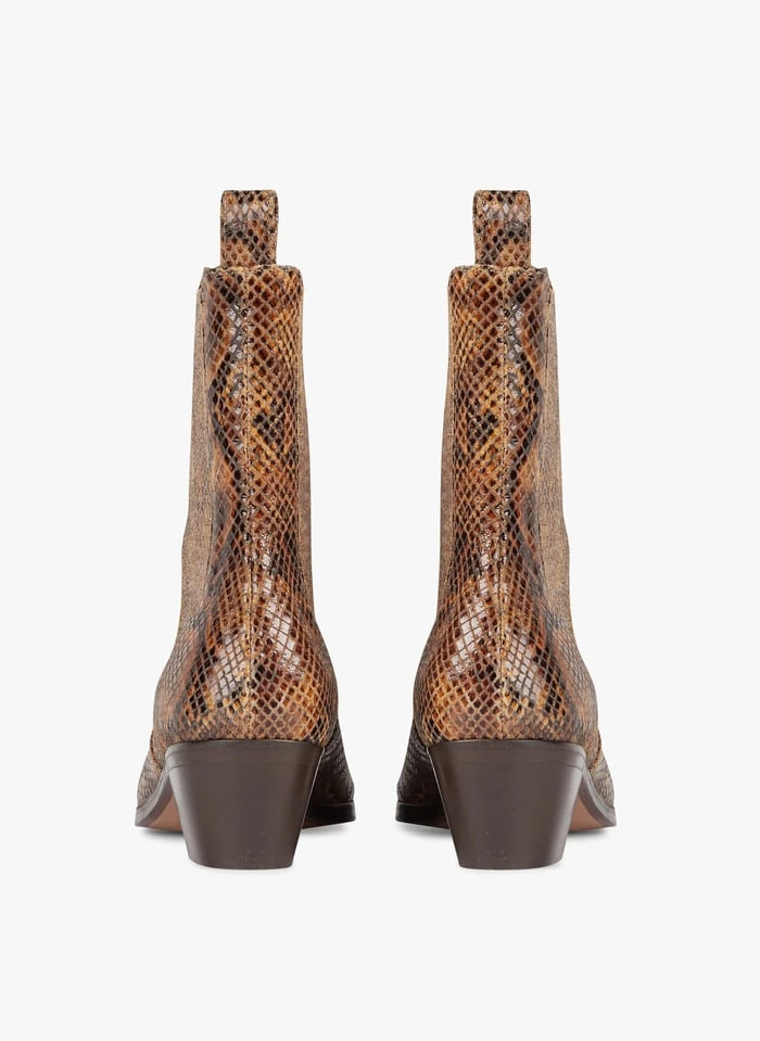 Bottines en cuir imprimé motif python by Soeur pour Femme.