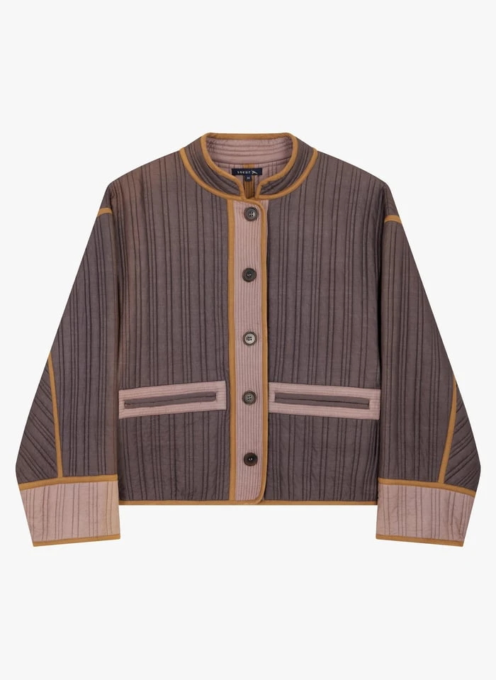 Ce modèle est présenté avec Gilet court boutonné by SOEUR, Pantalon droit chiné en lin by SOEUR, Mules plates en cuir by SOEUR, Sac bandoulière en cuir de vachette by SOEUR