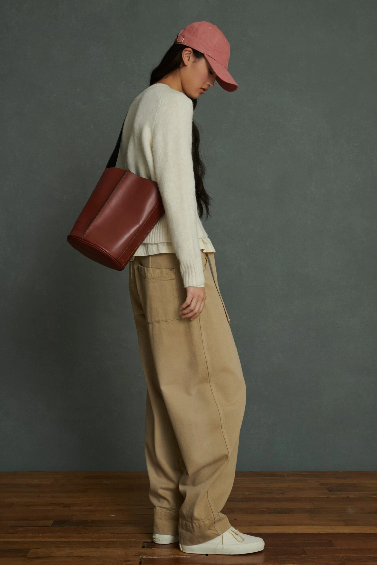 Sac seau en cuir bicolore, extérieur acajou et intérieur noir