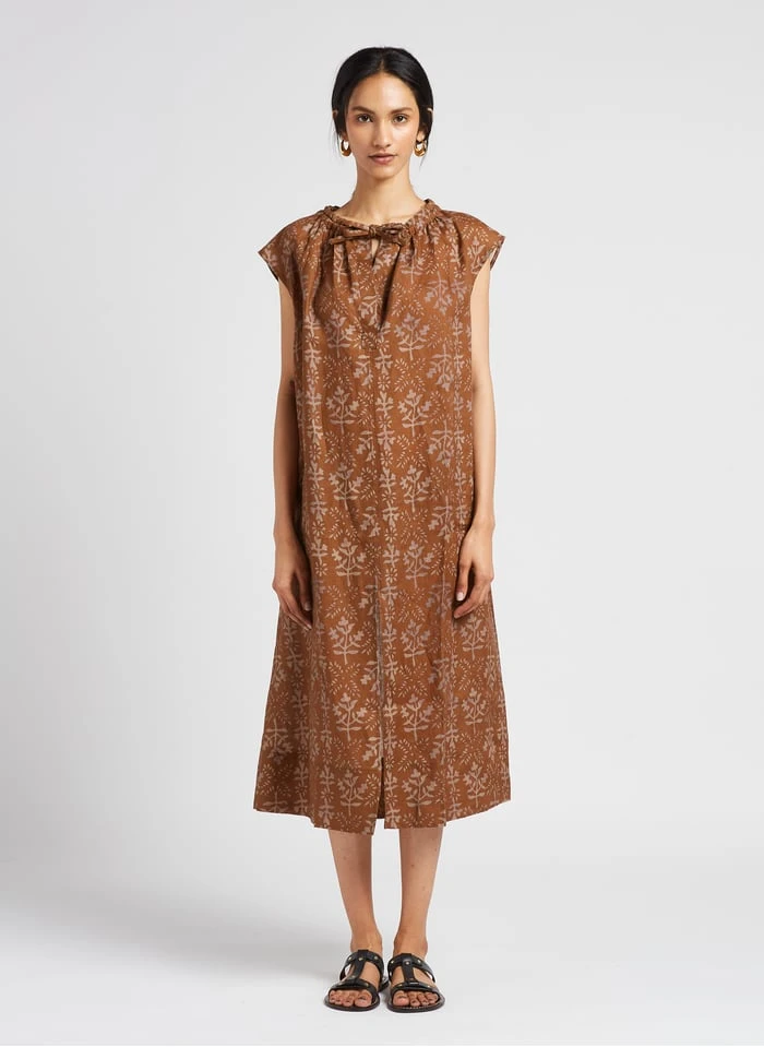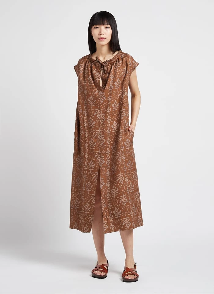 Robe midi col tunisien imprimée en lin by Soeur pour Femme.