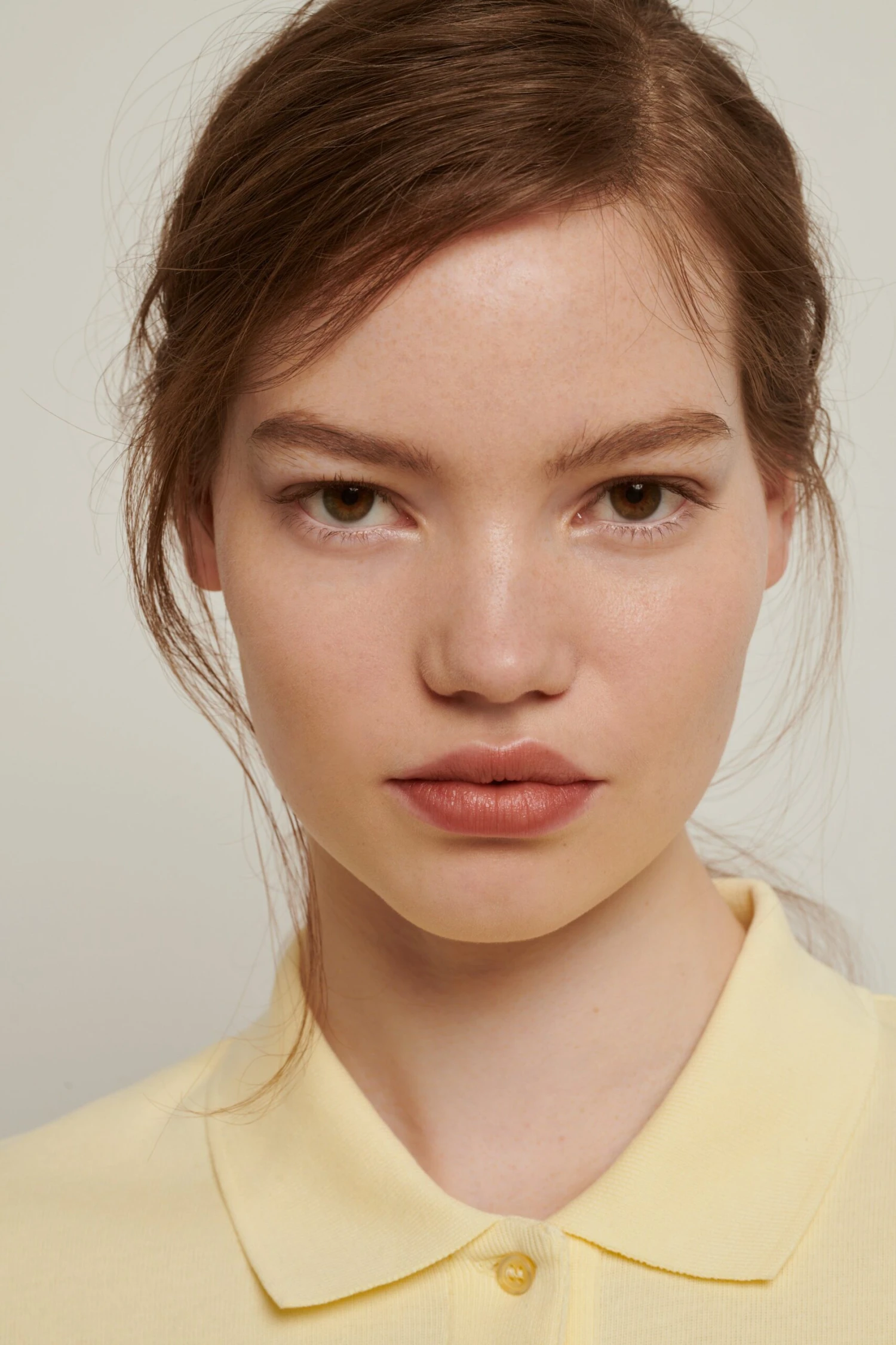 Polo court et près du corps en coton biologique jaune pâle, broderie CAFÉ LEANDRA & SOEUR.