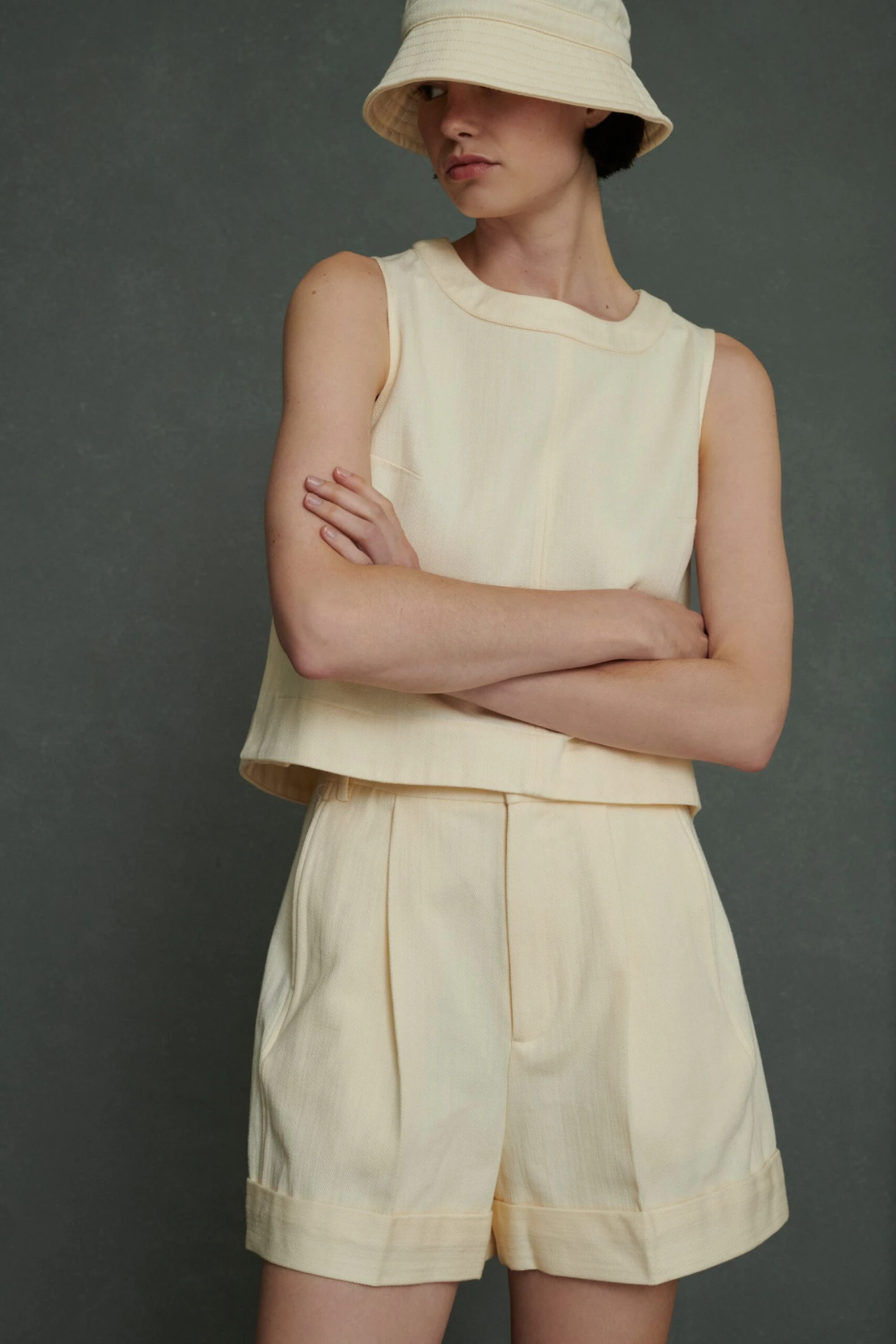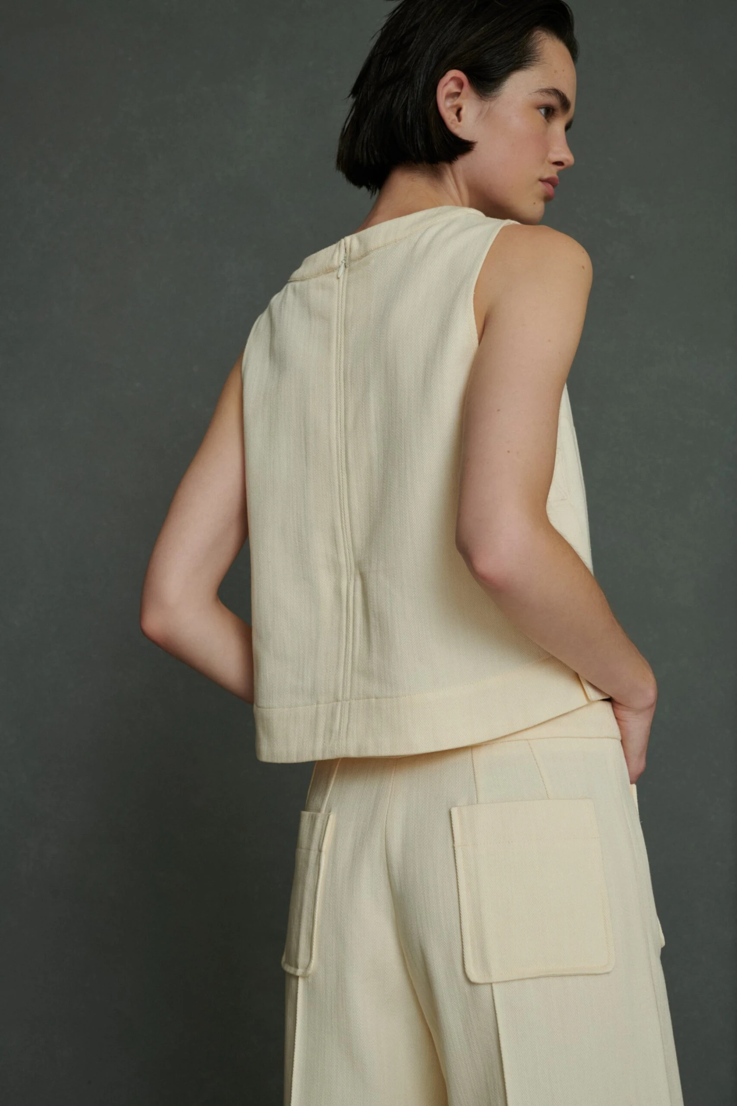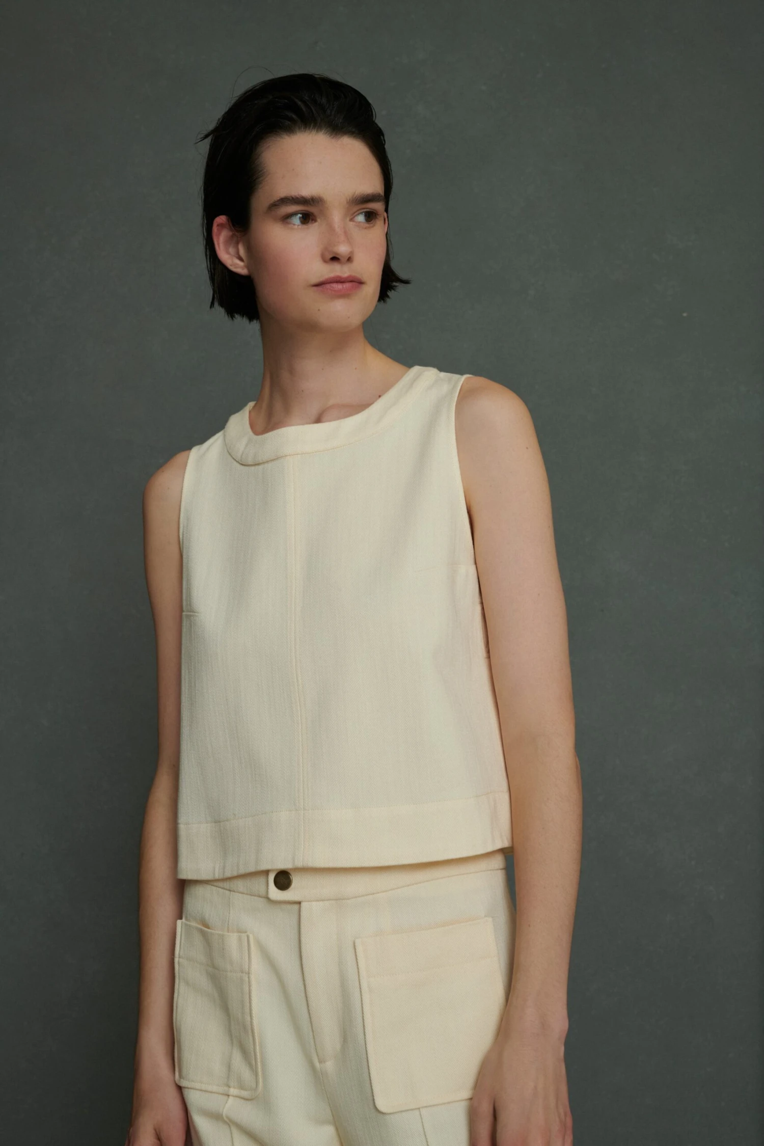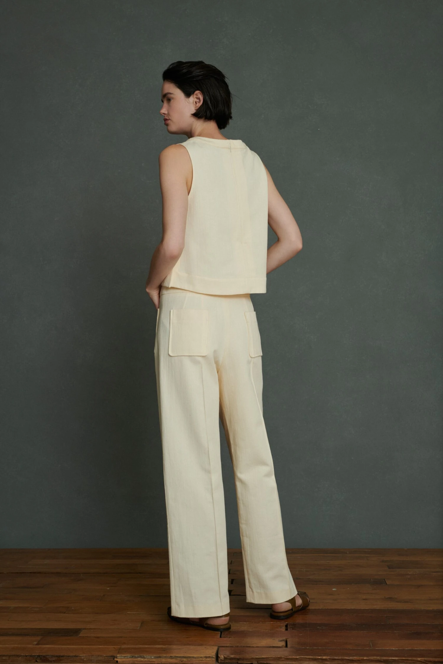 Pampa est un top d’inspiration vintage élégant avec une coupe trapèze, un zip invisible au dos et des fentes discrètes aux côtés qui sont assemblées par une surpiqure en croix. Sa matière souple et dense lui permet de maintenir un beau volume suspendu une fois porté. A porter avec un bas dépareillé ou en total look avec le Harry dans la même matière et couleur.