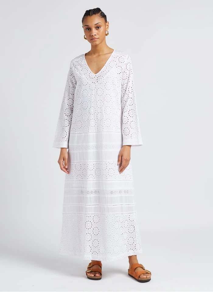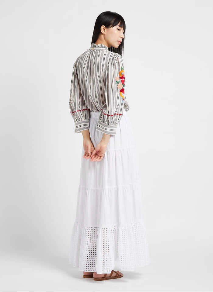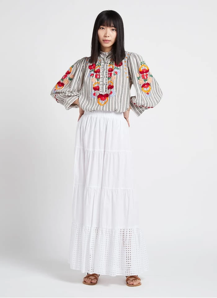 Ce modèle est présenté avec Blouse col rond à broderies florales en coton by ANTIK BATIK, Jupe longue à fronces 100 coton by TWINSET